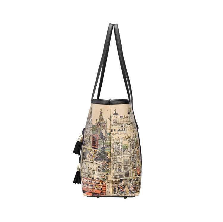 **DAMARA London City Print Tote Bag – Where London Charm Meets Practical Fashion**
